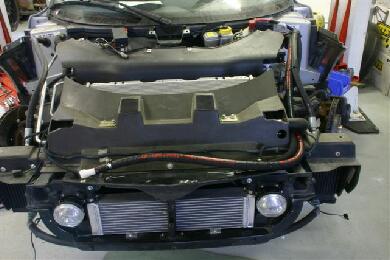 クラムシェル内に水冷インタークーラー用のラジエーターを